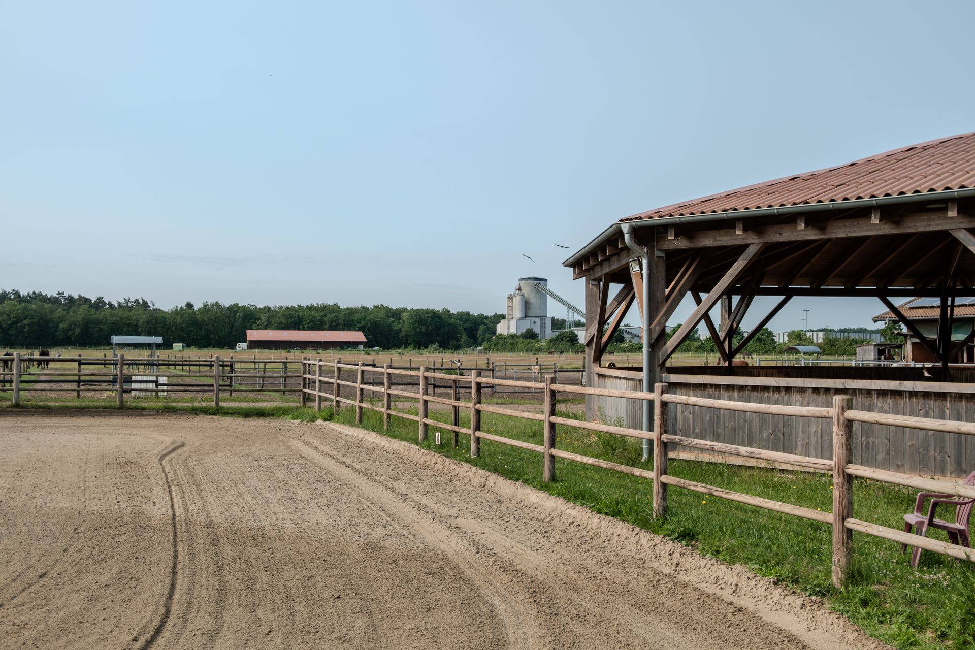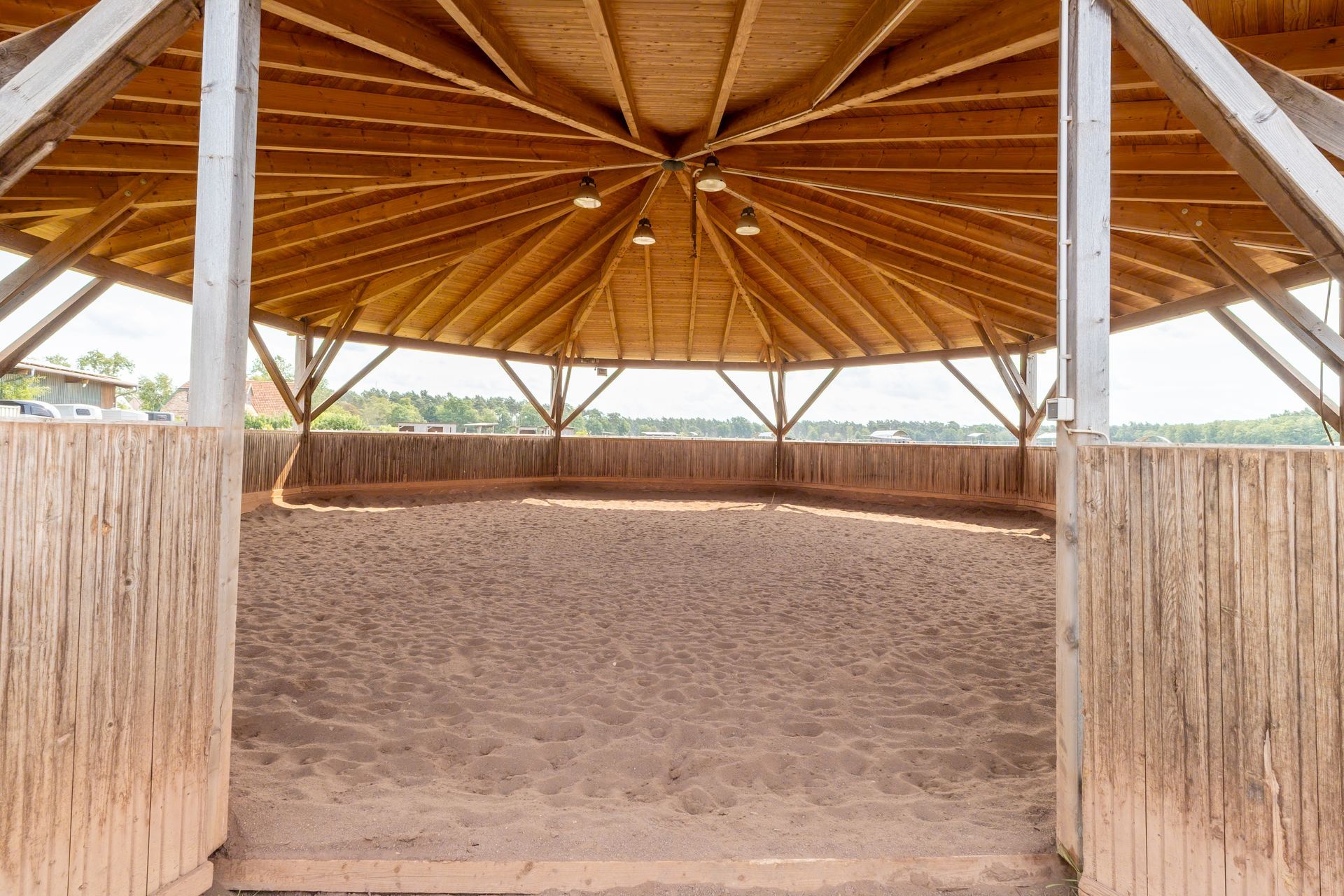 Der 23 × 40 m Außenreitplatz eignet sich ideal für Reiten, Longieren, Freilaufen oder Handarbeit.